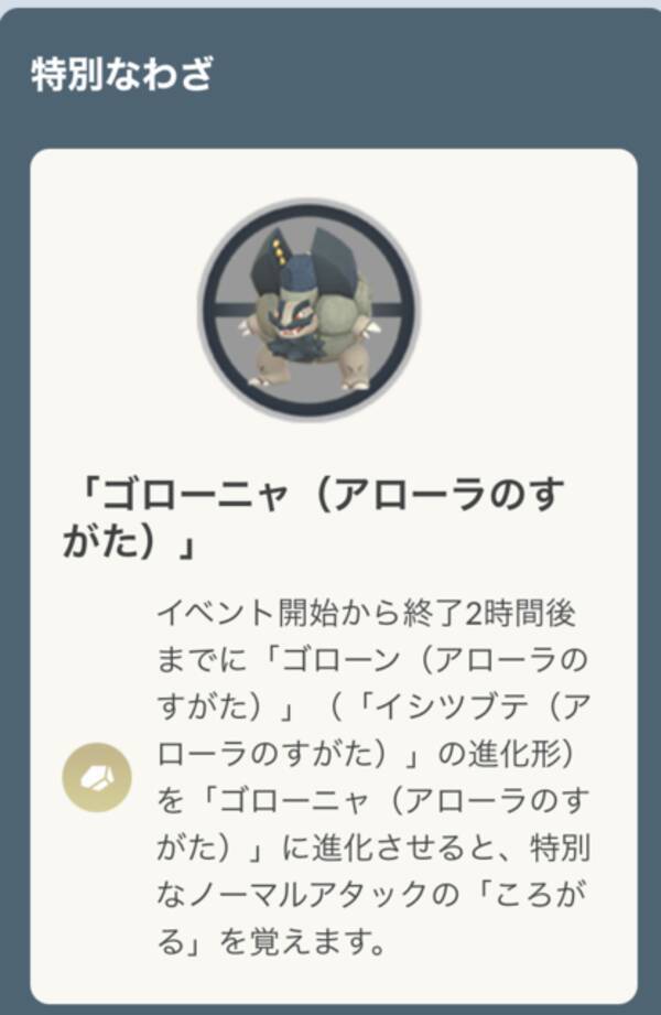 弱点・相性 色違い 進化系統 No75→ ゴローン フォルム違い 通常のすがた アローラのすがた ポケモンGOの「イシツブテ」について、色違いの入手方法や実装状況、色違い画像の見た目などを